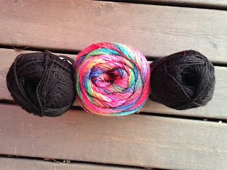 Såg så fina halvvantar hos Marias garn så jag köpte ett glittrigt garn och svart fabel som jag ska prova att göra något liknande med!